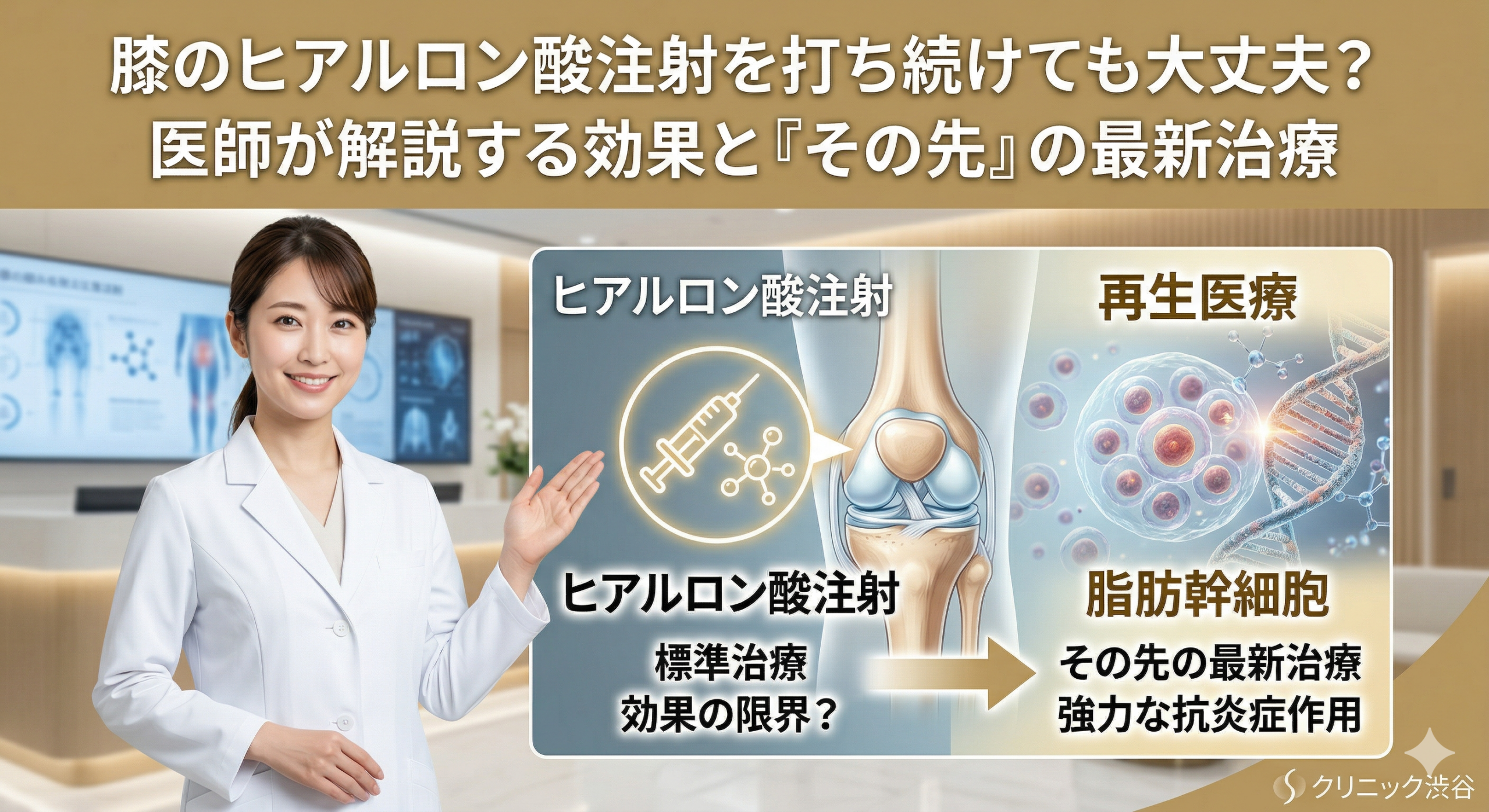 膝のヒアルロン酸注射は打ち続けても大丈夫?医師が解説する効果と「その先」の最新治療 膝の痛みを感じて整形外科を受診した際、多くの方が提案されるのが「ヒアルロン酸注射」ではないでしょうか。しかし、通院が長引くにつれて「いつ […]