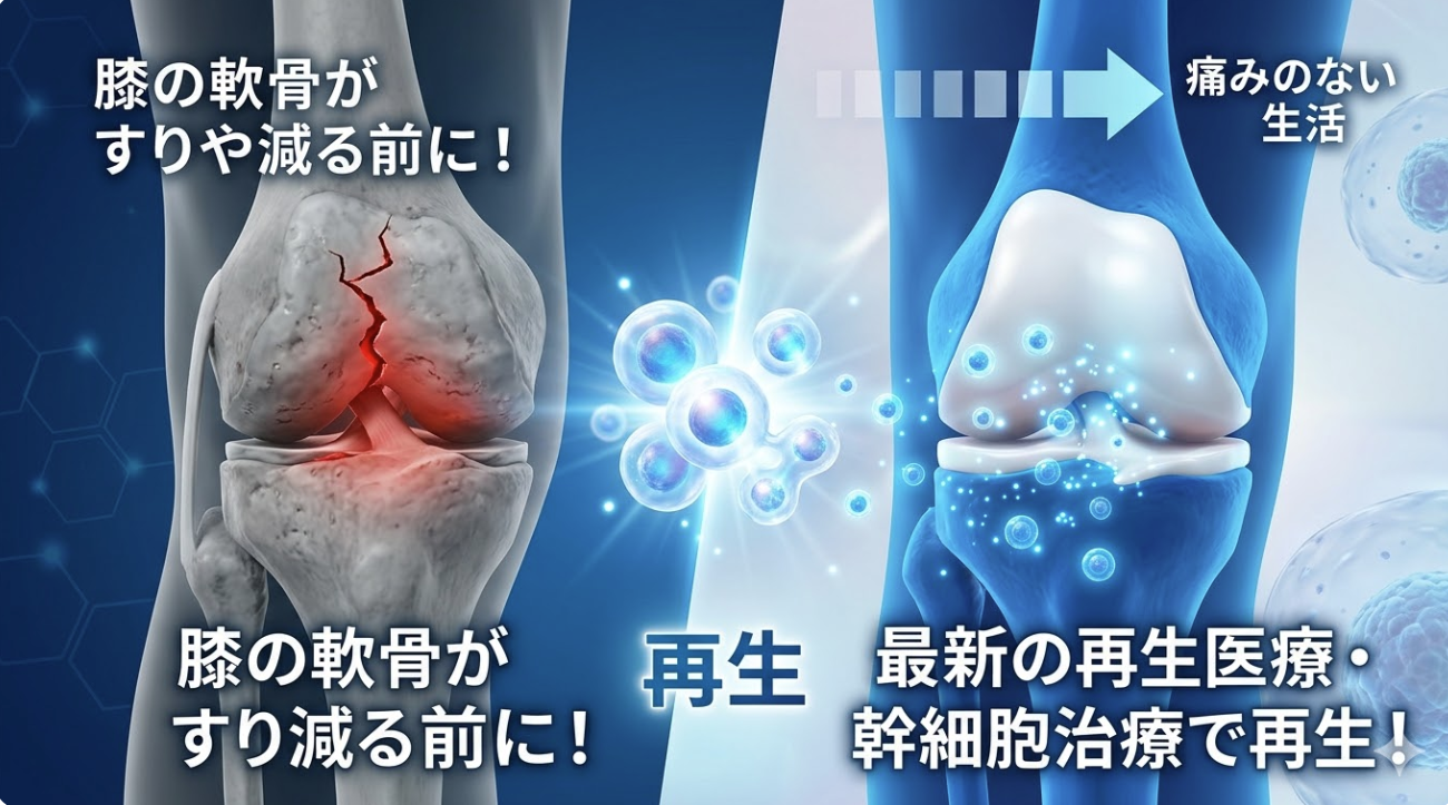 膝の人工関節手術を検討中の方へ。メリット・デメリットと注目の再生医療という選択肢 長引く膝の痛みに対し、「もう手術しかないと言われた」「でも手術は怖い」と悩まれている方は少なくありません。本記事では、膝の人工関節手術の実 […]
